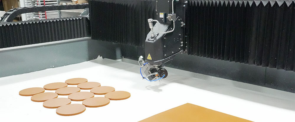 Die cutting is generally used for high-volume production rather than rapid prototyping. That’s because this gasket fabrication process uses a metal tool, or die, that needs to be machined. Die cutting is cost-effective when the cost of the die can be spread across many parts, but rapid prototyping usually involves very low volumes. Once the tool is made, however, die cutting is faster than water jet cutting. Yet its tolerances are less exact because the die causes edge concavity dependent on the material thickness.